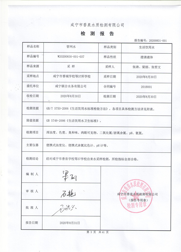 ͼ£º³ÇÇø37ËùѧУˮÖʼì²â±¨¸æ ±¾´Î±»¼ì²âµÄ37ËùѧУ£¬£¬£¬£¬£¬£¬ÏÖ³¡¼ì²â»ë×ǶȺÍÓÎÀëÓàÂÈ£¨¶þÑõ»¯ÂÈ£©Ö¸±ê¾ùºÏ¸ñ£¬£¬£¬£¬£¬£¬´ø»ØÊµÑéÊÒ¼ì²âµÄÏîÄ¿£¬£¬£¬£¬£¬£¬É«¶È¾ù¡Ü5²¬îÜÉ«¶Èµ¥Î»£¬£¬£¬£¬£¬£¬ÎÞÒì³ô¡¢Òì棬£¬£¬£¬£¬£¬pHÖµºÍ°±µªÖ¸±ê¾ù·ûºÏ¹ú¼Ò±ê×¼¡£¡£¡£¡£¡£¡£¡£ ÏÌÄþÊÐÏãȪˮÖʼì²âÓÐÏÞ¹«Ë¾¸ºÔðÈË˵£º¡°¾¹ý¶Ô²É¼¯µÄË®Ñù¼ì²â£¬£¬£¬£¬£¬£¬ÏÌÄþ³ÇÇøÓɱ¼³Û±¦ÂíÓéÀÖ¹©Ë®µÄ37ËùѧУ£¬£¬£¬£¬£¬£¬Ë®ÖÊ·ûºÏ¡¶Éú»îÒûÓÃË®ÎÀÉú±ê×¼¡·GB 5749-2006¹ú¼Ò±ê×¼¼°Ïà¹ØÒªÇ󣬣¬£¬£¬£¬£¬¿É·ÅÐÄÒûÓᱡ£¡£¡£¡£¡£¡£¡£ רҵ¾«Ï¸ ±£Ö¤¼ì²â½á¹û¾«×¼È¨Íþ ½ñÄêÓÉÓÚйڷÎÑ×ÒßÇéÓ°Ï죬£¬£¬£¬£¬£¬ÎÒÊÐѧУ×ÔÀ´Ë®ÒÑÓдó°ëÄêʱ¼äδÕý³£Ê¹Ó㬣¬£¬£¬£¬£¬Ë®¹ÜÄÚ¶àÉÙ»á»ýÔÜδÁ÷ͨµÄ¡°ËÀË®¡±¡£¡£¡£¡£¡£¡£¡£ÎªÈ·±£±¾´Î¿ªÑ§¼¾Ð£Ô°Ë®Öʼì²â½á¹û¾«×¼£¬£¬£¬£¬£¬£¬ÏÌÄþ±¼³Û±¦ÂíÓéÀÖУ԰ˮÖʲÉÑùר°àÈËÔ±£¬£¬£¬£¬£¬£¬Ã¿µ½Ò»ËùѧУ¶¼»áÔÚѧУʳÌá¢ËÞÉáË®ÁúÍ·ºÍÏû·À˨ǰפ×ãÐí¾Ã£¬£¬£¬£¬£¬£¬½«×ÔÀ´Ë®ÁúÍ·´ò¿ªºó£¬£¬£¬£¬£¬£¬ÖÁÉÙ·ÅË®5-10·ÖÖӲŽ«×ÔÀ´Ë®²ÉÑù»òÏÖ³¡¼ì²â¡£¡£¡£¡£¡£¡£¡£ ¾¡¹Ü½¾ÑôËÆ»ð£¬£¬£¬£¬£¬£¬µ«¹¤×÷ÈËԱȴһ˿²»¹¶¡£¡£¡£¡£¡£¡£¡£ÎªÈ·±£¸ßЧÍê³É±¾´Î¼ì²âÈÎÎñ£¬£¬£¬£¬£¬£¬Ð£Ô°Ë®ÖʲÉÑùר°àÔÚË®Öʲɼ¯³É¹¦ºó£¬£¬£¬£¬£¬£¬µÚһʱ¼äËÍÍùÏÌÄþÊÐÏãȪˮÖʼì²âÓÐÏÞ¹«Ë¾£¬£¬£¬£¬£¬£¬·ÖÇø×÷Õ½¡¢¶à×éÐͬ£¬£¬£¬£¬£¬£¬×öµ½Ó¦¼ì¾¡¼ì£¬£¬£¬£¬£¬£¬²»Â©Ò»Ð£¡£¡£¡£¡£¡£¡£¡£ ÏãȪˮ¼ì¹«Ë¾½«ËÍ´ïµÄË®ÑùÁ¬Ò¹¿ªÕ¹¼ì²â£¬£¬£¬£¬£¬£¬¼ì²âÈËÔ±±Á½ôÿһ¸ùÉñ¾£¬£¬£¬£¬£¬£¬²»Í¬Ð£ÇøºÍ²»Í¬²ÉË®µãµÄÁ¿±£¬£¬£¬£¬£¬£¬¶¼ÐèÈÏÕæ×öºÃ±ê¼Ç£»£»£»£»£»£»£»£»Ã¿Ò»¸ö²ÎÊýºÍÖ¸±ê¶¼Òª×Ðϸ·´¸´µØ¹Û²ì¡¢¼ì²â£¬£¬£¬£¬£¬£¬Ö»ÓÐ×öµ½½÷СÉ÷΢£¬£¬£¬£¬£¬£¬²Å¿É±£Ö¤¼ì²â½á¹û׼ȷÎÞÎ󡣡£¡£¡£¡£¡£¡£ ¾ÝϤ£¬£¬£¬£¬£¬£¬ÏãȪˮ¼ì¹«Ë¾ÊÇÏÌÄþÊÐÉú»îÒûÓÃˮˮÖʼì²âÄÜÁ¦×îÇ¿µÄרҵ¼ì²â»ú¹¹¡£¡£¡£¡£¡£¡£¡£¾ßÓÐÉú»îÒûÓÃË®106ÏîÖÐ94¸öÏîÄ¿¼ì²âÄÜÁ¦£¬£¬£¬£¬£¬£¬È¡µÃ×ÊÖʵÄË®ÖʲÎÊý´ï101Ï£¬£¬£¬£¬£¬×÷Ϊºþ±±Ê¡³ÇÊй©Ë®Ë®Öʼà²âÍø³ÉÔ±µ¥Î»£¬£¬£¬£¬£¬£¬ÆäÒûÓÃË®¼ì²âÄÜÁ¦´¦ÓÚºþ±±Ê¡¹©Ë®ÐÐÒµµÚ¶þλ¡£¡£¡£¡£¡£¡£¡£±¾´Î±»²â37ËùѧУ£¬£¬£¬£¬£¬£¬ÏãȪˮÖʼì²â¹«Ë¾Í³Ò»³ö¾ßȨÍþÐÔµÄË®Öʼì²â±¨¸æ¡£¡£¡£¡£¡£¡£¡£ ÉÏÃÅÄÉÚÉ ¼ùÐС°µêС¶þ¡±·þÎñ¾«Éñ ÉÏÃÅÄÉÚÉÌáÉý·þÎñ£¬£¬£¬£¬£¬£¬¼ùÐС°µêС¶þ¡±·þÎñ¾«Éñ¡£¡£¡£¡£¡£¡£¡£³ýÁ˶ÔË®ÖʽøÐвɼ¯ºÍ¼ì²â£¬£¬£¬£¬£¬£¬ÏÌÄþ±¼³Û±¦ÂíÓéÀÖ×éÖ¯¶þ´Î¹©Ë®ÔËÓª²¿£¬£¬£¬£¬£¬£¬»ý¼«Ö÷¶¯Óë¸÷ѧУ¶Ô½Ó£¬£¬£¬£¬£¬£¬½«¡¶¹ØÓÚÎÒÊпªÑ§Ç°Ñ§Ð£ÓÃË®°²È«ÎÂܰÌáʾ¡·Ë͵½Ñ§Ð££¬£¬£¬£¬£¬£¬²¢¶ÔѧУµÄ¹©Ë®ÉèÊ©½øÐмì²é¡¢Î¬»¤¡£¡£¡£¡£¡£¡£¡£
